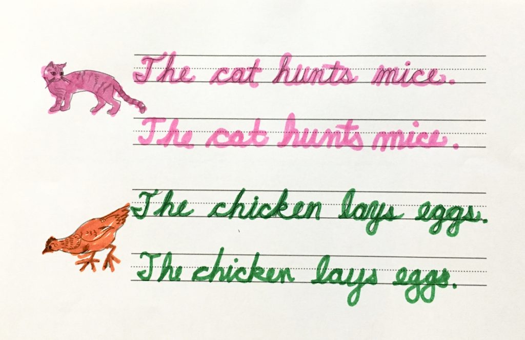 Students have the ability to learn both. It is better to allow them to learn both and choose their preference. The samples below were done by five-year-old students.